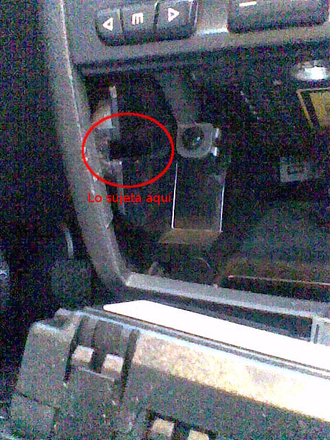En la segunda imagen se ven las pestañas que retienen la radio, y cómo al introducir el destornillador se mueven hacia la radio, desbloqueando su salida.