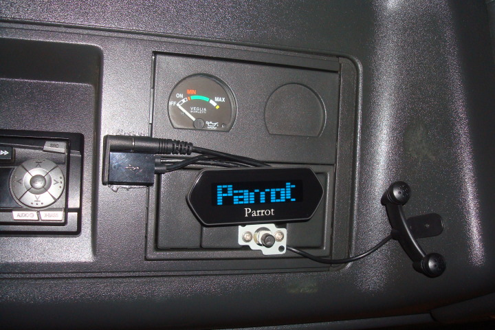 La primera instalación de Parrot la hago en la furgoneta de trabajo, mi padre consigue un manos libres a riesgo de usarla como conejillo de indias. Aun así fue la instalación más sencilla.