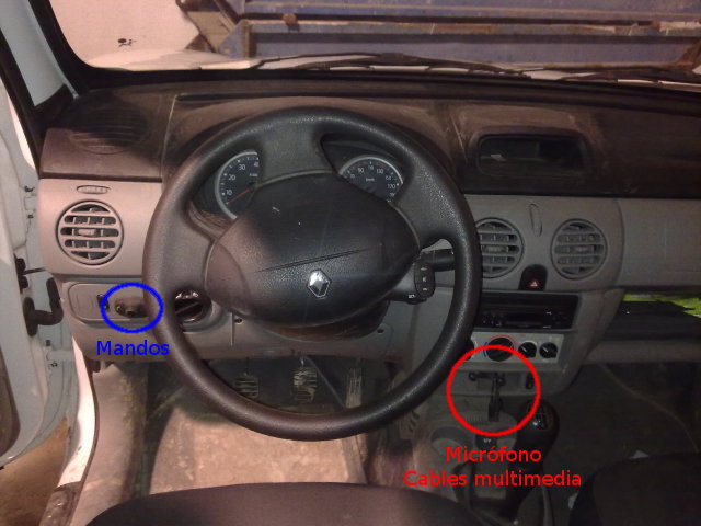 Por ahí paso los cables multimedia que se quedan en el salpicadero, y el micrófono que lo llevo al espejo interior. Es fácil meter el cable por el lateral y el techo, por el salpicadero va debajo de la tapa, y hay una zona que va a la vista, pero así lo he dejado.